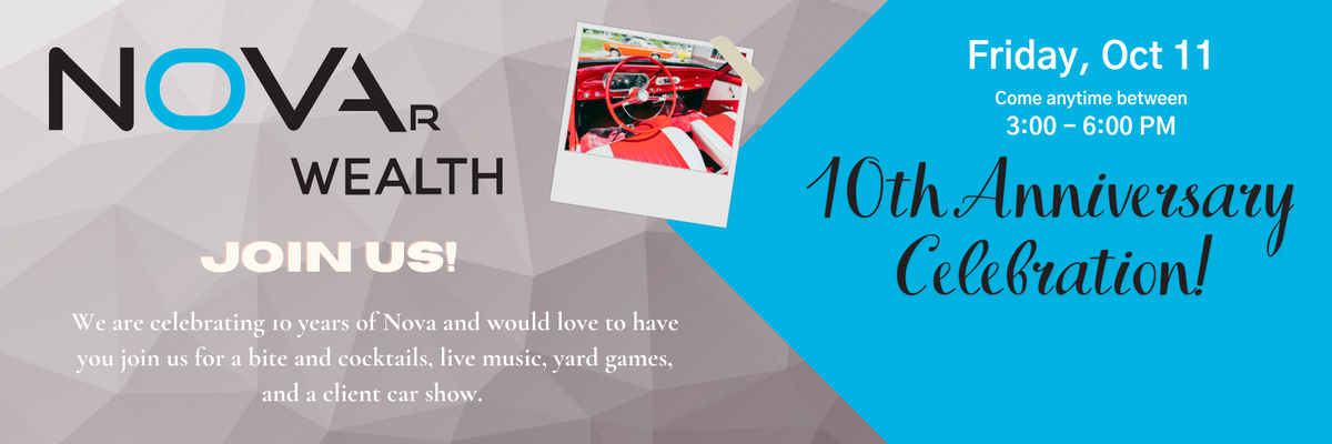 We are celebrating 10 years of Nova and would love to have you join us for a bit and cocktails, live music, yard games, and a client car show outside. Come whenever you like between 3PM and 6PM.
